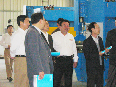 2005年5月6日上午,由安徽省經(jīng)濟學會和馬鞍山市經(jīng)濟學會一行數(shù)十人組成的代表團來我公司參觀考察,考察中代表們普遍對我公司數(shù)控機床產(chǎn)品產(chǎn)生了濃厚的興趣。我公司近年來通過引進荷蘭Delem公司生產(chǎn)的數(shù)控系統(tǒng)(目前國際鍛壓行業(yè)知名數(shù)控系統(tǒng))而制造的各種數(shù)控機床,自投入市場以來一直反響熱烈。該代表團在考察中對我公司近年來的快速發(fā)展給予了肯定。