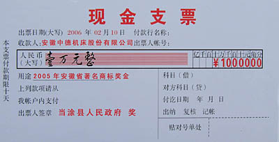 “中德機床”獲當涂縣2005年度“創立品牌獎”