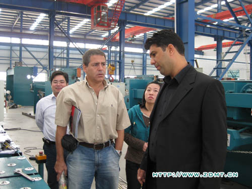 稍事休息,Atila Deniz先生和Mr.Tunc便帶著迫切的心情參觀了中德的各個車間。從裝備車間到大件車間,至電焊車間再到金工車間。客人對中德產(chǎn)品表現(xiàn)出濃厚的興趣,提出的問題也是相當專業(yè)、細致。比如,機床使用材料的鋼號,數(shù)控系統(tǒng)的工作效率等等,無不體現(xiàn)出一個機床消費成熟國的高標準。